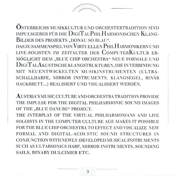 Recorded 1990 at the Blue Chip Academy in 4173 St. Martin (MK)/Austria and the Elektronisches Försterhaus in Linz, Austria.