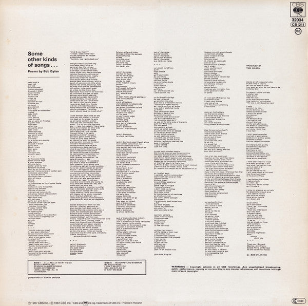 The front cover has no logo or catalogue number. The rear cover has the CBS logo at the upper right. Under the CBS logo has "CB 211" and 53 in a circle. At bottom left : Printed in Holland. On labels: Made in Holland. Orange labels with asterisk above catalog no. ℗ 1967 CBS Inc. / © 1967 CBS Inc.