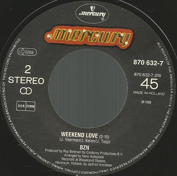 Track A 'La Primavera' was originally written as 'Een Droom Is Nu Voor Ons Voorbij' in 1987 for Koos Alberts by Jan Keizer. It was recorded by Koos before his tragic car-accident, which occured on 29-10-1987. It was released as a track on the 1988 album [m970601. In the meantime the other bandmembers of BZN had the idea to re-use the song for themselves, and recorded the track with Italian lyrics as 'La Primavera'. BZN had help with the Italian lyrics by Ton Doodeman, a friend of Jan Tuijp, but he's uncredited for this on the release. In fact the BZN song is a cover of Koos' song, instead of the other way around.