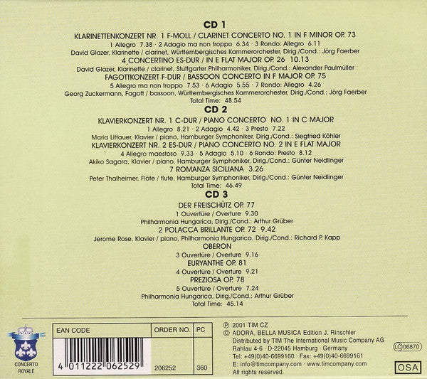 Carl Maria von Weber - Klavierkonzerte • Fagottkonzert • Klarinettenkonzert Nr. 1 = Piano Concertos • Bassoon Concerto • Clarinet Concerto No. 1 (3xCD, Comp)