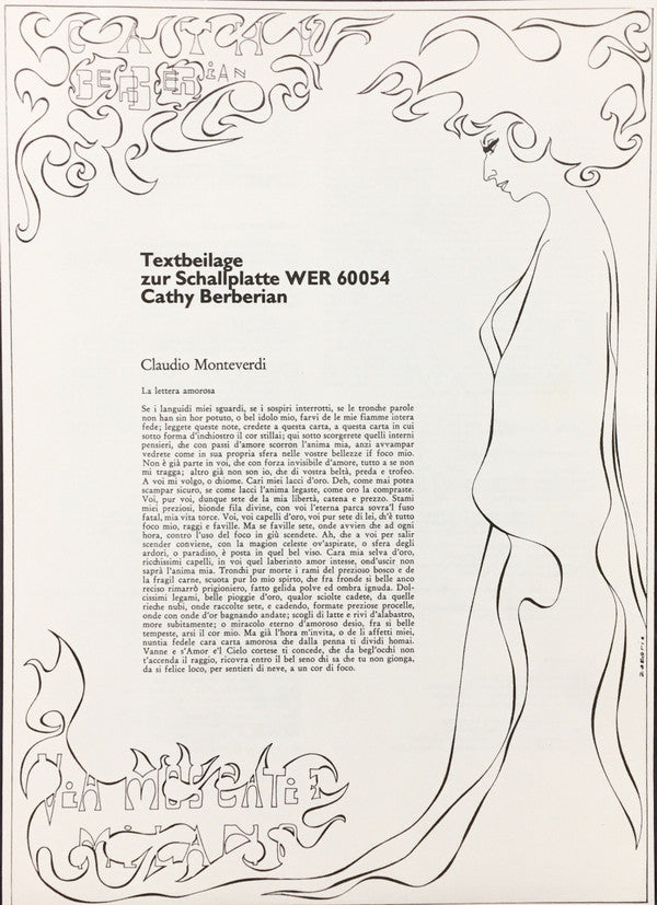 Tonaufnahmen November 1970 in Mailand, mit Ausnahme von 'Stripsody', eine Produktion des Saarländischen Rundfunks.