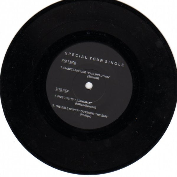 This single was made available in an exclusive offer to the readers of the NME music paper issue dated, October 12th, 1991. The details printed were as follows (edited): "Hey you! Skinny! If you can just tear your gaze away from the footwear for one moment, have a butchers at this once-in-a-lifetime offer, brought to you by NME and Dedicated Records. There are 3,000 copies of a very limited edition Chapterhouse single...'Falling Down' recorded live in London in September - unavailable elsewhere, natch - backed up by 'Junk Male' another live track by 5:30 and 'Outshine The Sun' by The Belltower (also live)...So to nab your copy, all you have to do is cut out the coupon below and be among the first 100 punters to present it each night at the T-shirt stall on any of the live dates from Cardiff to Colne."