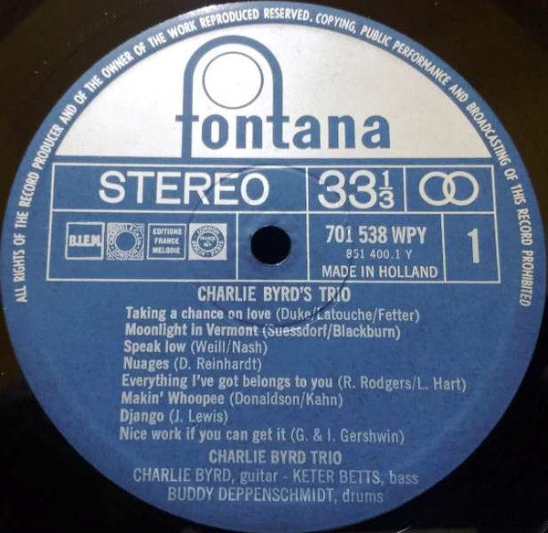 Charlie Byrd - Charlie Byrd's Trio (LP, Album, RE, RP)