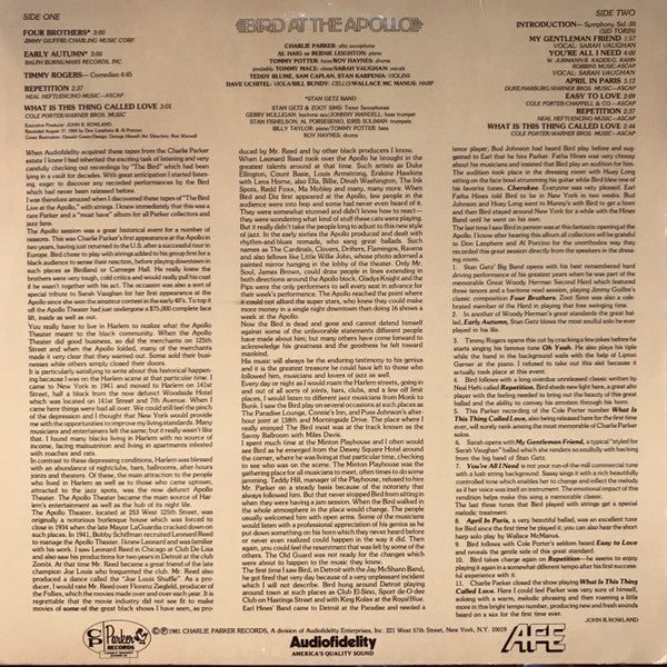 Charlie Parker - Bird At The Apollo (LP, Album, Mono)