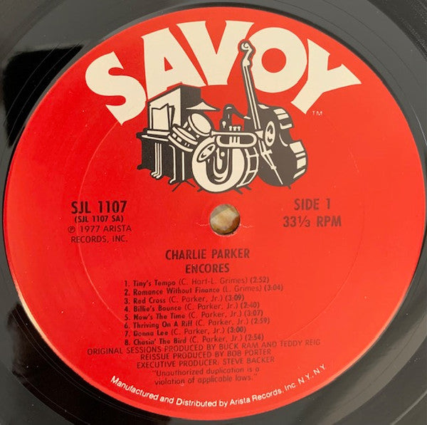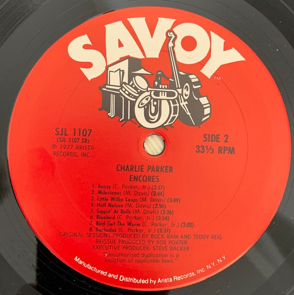 Extract from sleeve notes written by J.R. Taylor - "All of the first choice takes released by Savoy on 78RPM discs in the 1940s are already available on the two-record Bird/The Savoy Recordings (Master Takes Savoy SJL 2201). 'Encores' is entirely made up of alternate takes... in chronological order - but only one alternate for each selection."