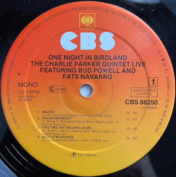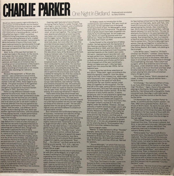 Charlie Parker - One Night In Birdland (2xLP, Album, Mono)