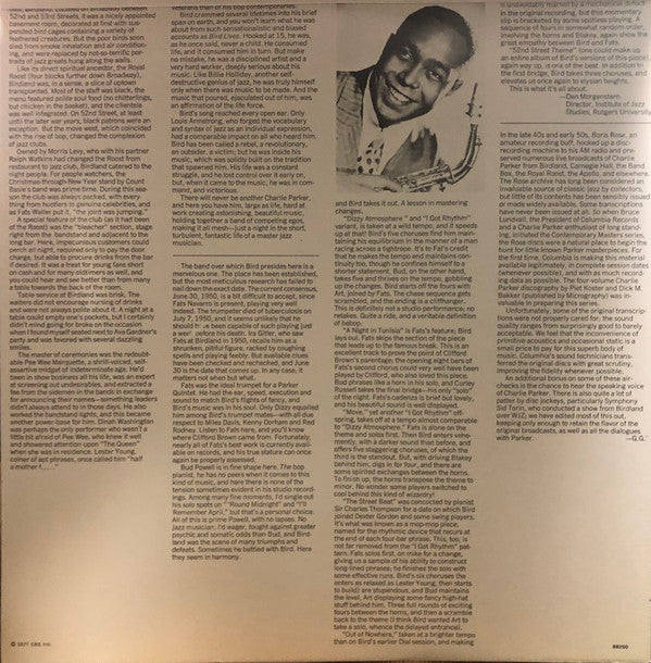 Recorded at Birdland, May 15 & 16, 1950. The rhythm section on the last three tracks are unknown, but is believed to include Tommy and Roy Haynes.