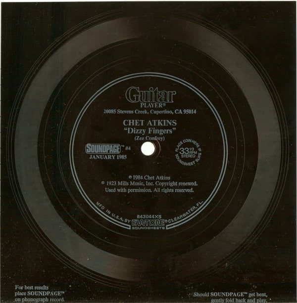 The release is a square-shaped flexi disc about 6" wide. Comes with Guitar Player Magazine, January 1985 issue.