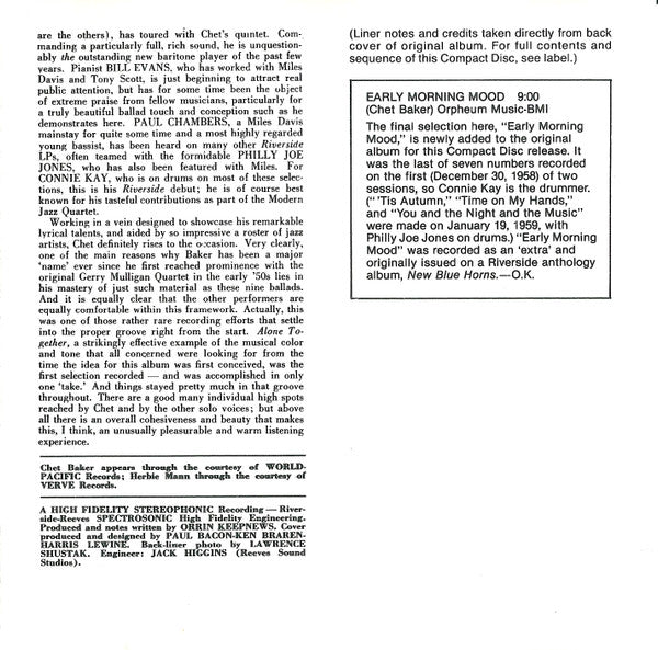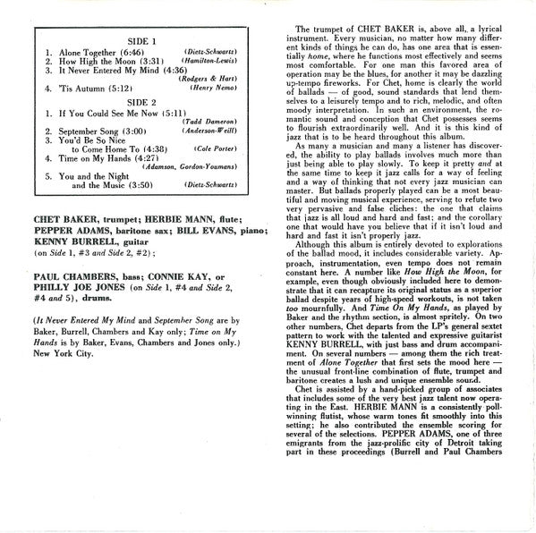 Recorded in New York City; December 30, 1958 (# 1 to 3, 5 to 7, 10) and January 19, 1959 (# 4, 8, 9).
