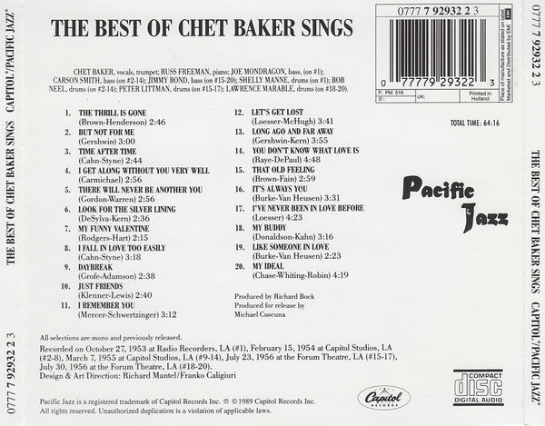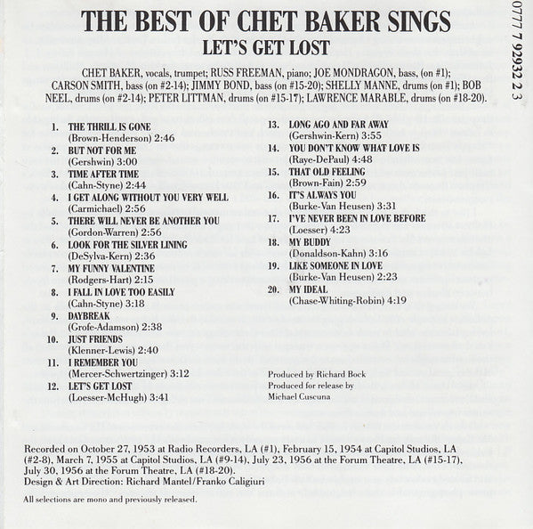 Chet Baker - The Best Of Chet Baker Sings (Let's Get Lost) (CD, Comp, Mono, RP)