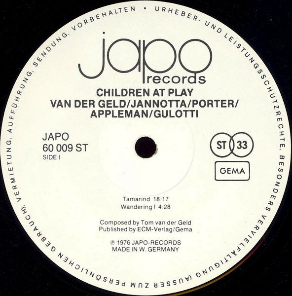 A-side label: Children At Play Van Der Geld/Jannotta/Porter/Appleman/Gulotti