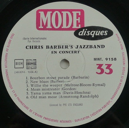 Chris Barber's Jazz Band - In Concert (LP, Album, Mono)