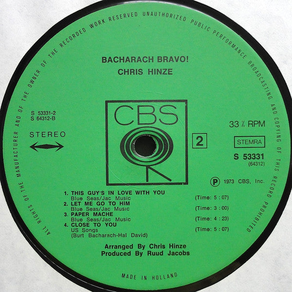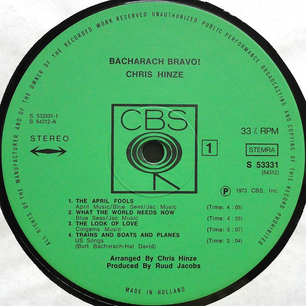 Chris Hinze - Hinze Plays Bacharach (LP)