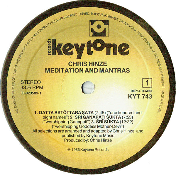 Chris Hinze - Meditation And Mantras (LP, Album)
