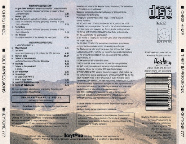 Recorded and mixed at the Keytone Studio, Amsterdam, the Netherlands. Mastering and digital editing at Willibrord Studio, Veenendaal, the Netherlands.