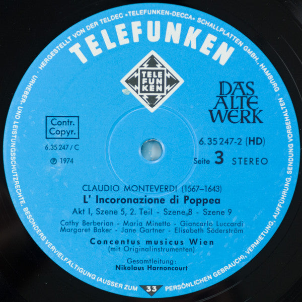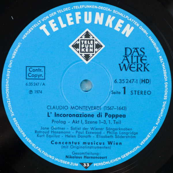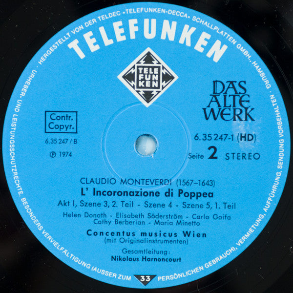 Claudio Monteverdi - Helen Donath • Elisabeth Söderström • Cathy Berberian • Paul Esswood, Concentus Musicus Wien, Nikolaus Harnoncourt