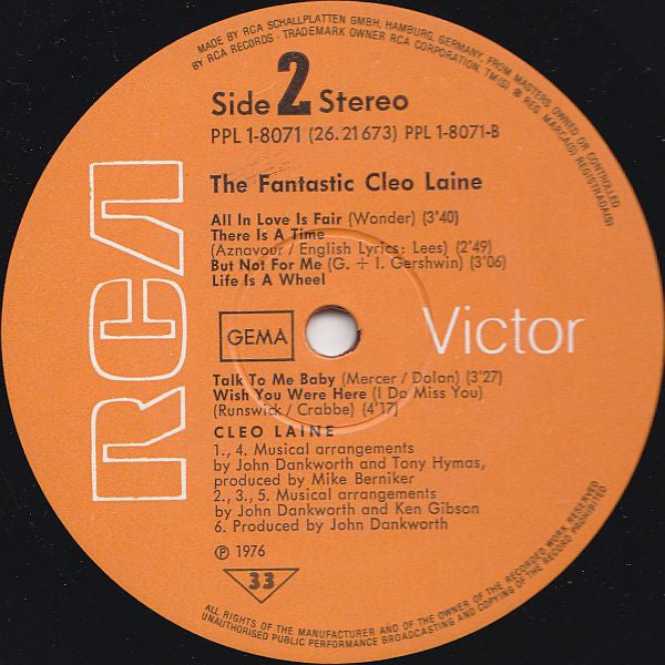 Made in Germany by RCA Schallplatten GmbH, Hamburg, Germany, from masters owned or controlled by RCA Records.