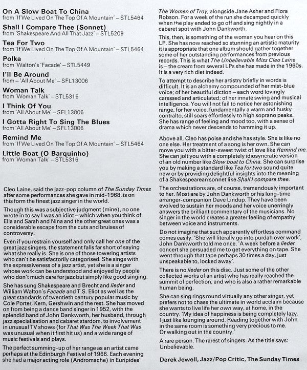 Cleo Laine - The Unbelievable (LP, Comp, Smplr)
