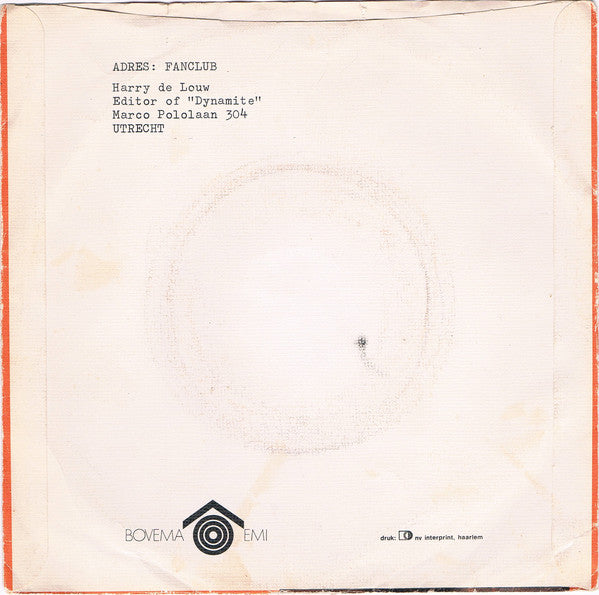 Small writing and fanclub stamp on sleeve; discoloration on left side of sleeve