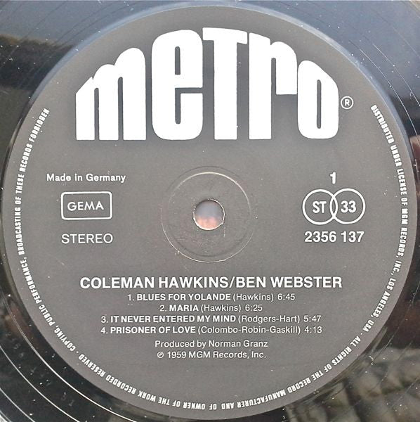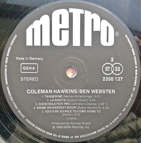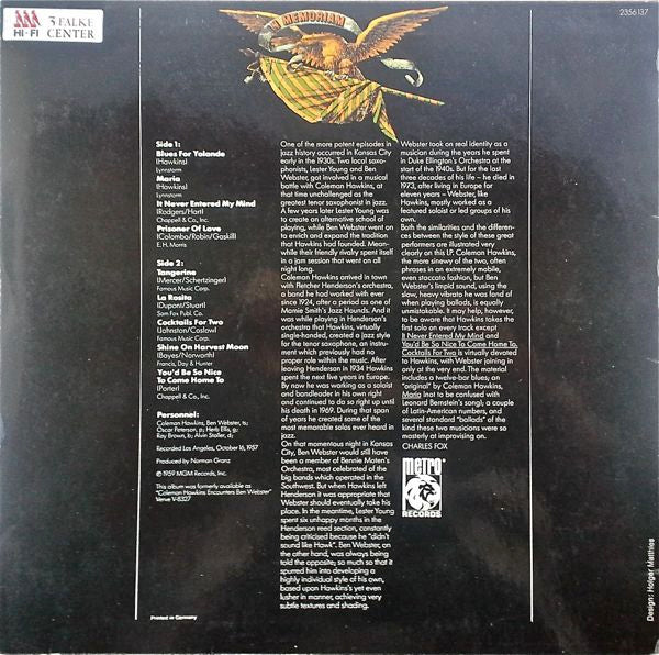 Coleman Hawkins, Ben Webster - In Memoriam (LP, Album, RE)