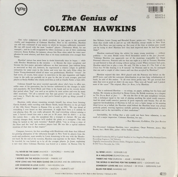 Coleman Hawkins - The Genius Of Coleman Hawkins (LP, Album, RE, RM)