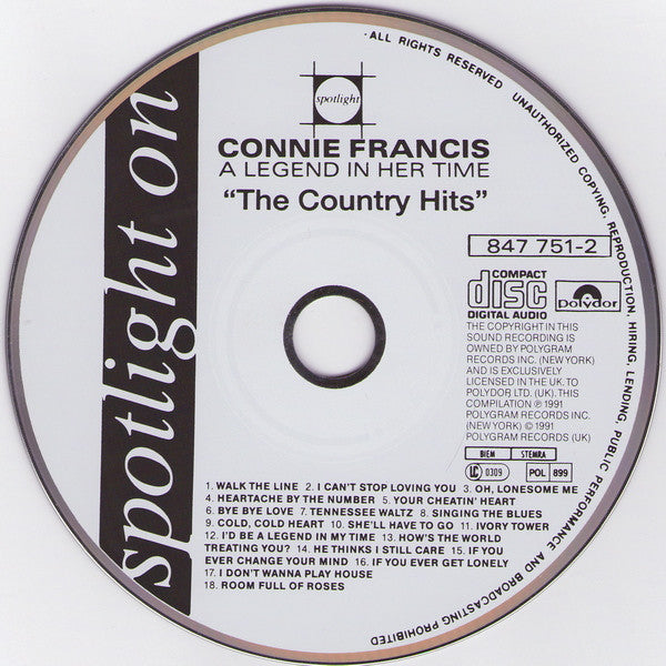 Connie Francis - A Legend In Her Time: The Country Hits (CD, Comp)