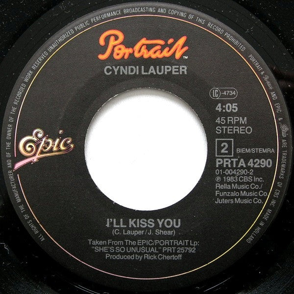 Similar to [r=9353703 but with a large center hole. [r=11965010 also has a solid centre. ℗ 1983 CBS Inc. © 1984 CBS Records Side A : Rella Music Co./ Dub notes Side B : Rella Music Co./ Funzalo Music Co./ Juters Music Co. Made in Holland (printed on labels and sleeve)
