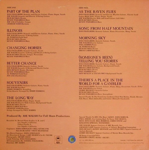 Special Thanks To Irv (The Bear) Azoff, John Baruck, Paul Ahern, For Coming Back To Town, Pat Craven, Rico, Don Ellis, Bill Robbins, Chris Stone and Kingston Springs, Tennessee.