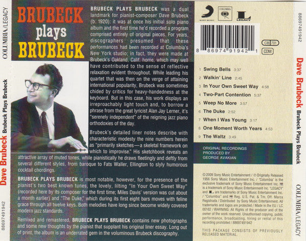 Recorded in Oakland at Dave Brubeck's house. Original album released 7/16/56.