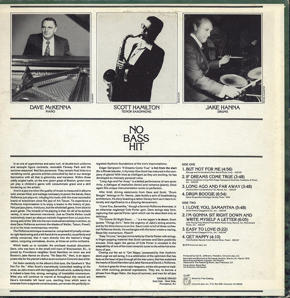 Dave McKenna · Scott Hamilton · Jake Hanna - No Bass Hit (LP, Album)