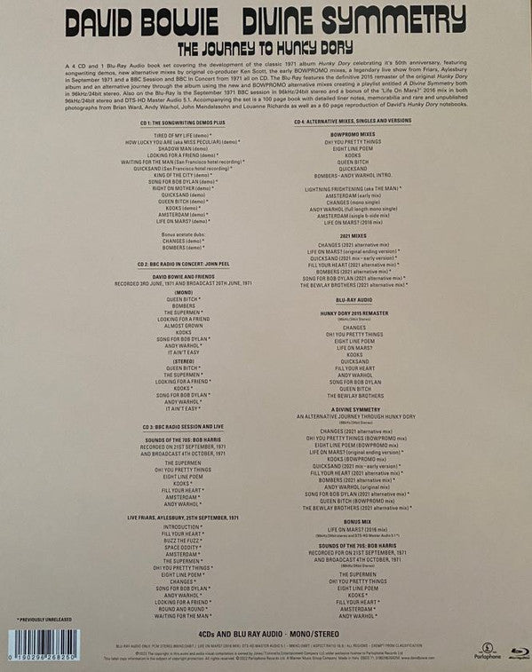 Contains 48 previously unreleased tracks/demos from the period, and new alternative mixes of 'Hunky Dory' tracks by original co-producer Ken Scott.