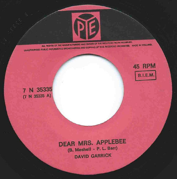 David Garrick - Dear Mrs. Applebee (7", Single)