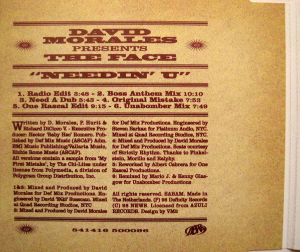 1&2: Mixed and Produced by David Morales for Def Mix Productions. Engineered by David 'EQ3' Sussman. Mixed at Quad Recordings Studios, NYC.