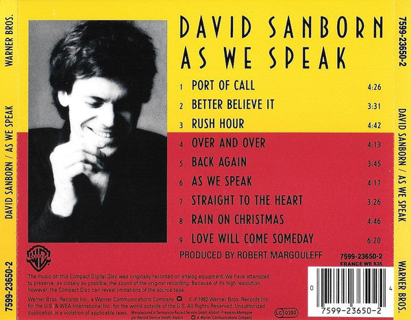 Recorded at Warner Bros. Recording Studios, North Hollywood, California; Massenburg Studio, Santa Monica, California; Mediasound, New York City; Soundworks, New York City.