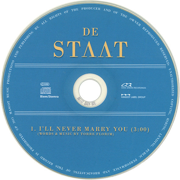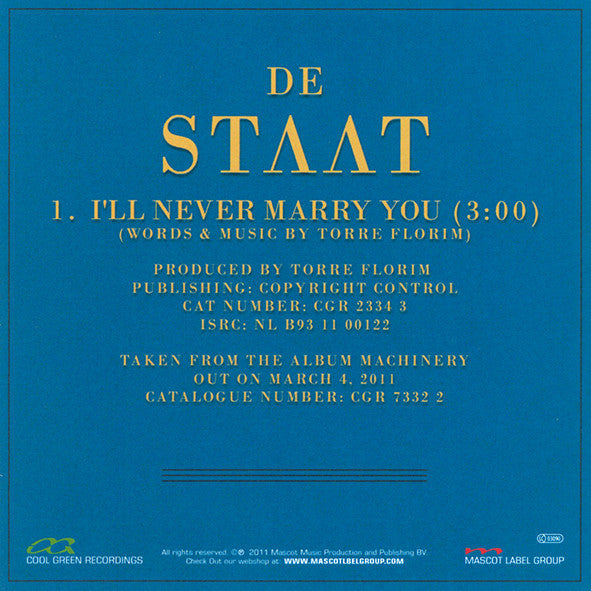 De Staat - I'll Never Marry You (CDr, Single, Promo)
