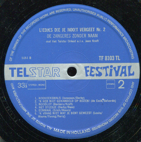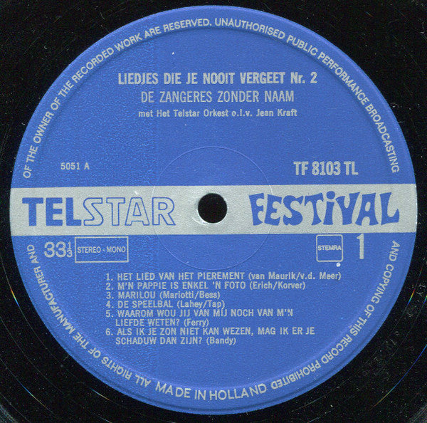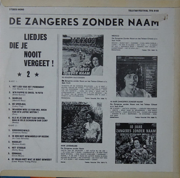 Zangeres Zonder Naam - Liedjes Die Je Nooit Vergeet! *2* (LP)