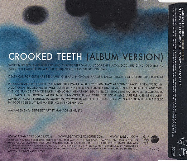Death Cab For Cutie - Crooked Teeth (CD, Single, Promo)