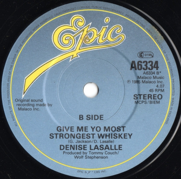 ℗1985 CBS Records "Made in England" in radius text. A-side - Flyright Music B-side - Malaco Music