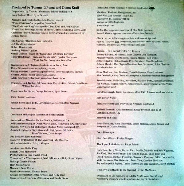 Diana Krall Featuring The Clayton-Hamilton Jazz Orchestra - Christmas Songs (LP, Album, RE)