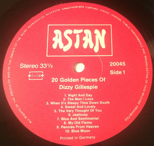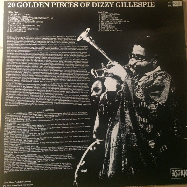 A1. Dizzy Gillespie And His Operatic Strings - Night And Day A2. Dizzy Gillespie And His Operatic Strings - The Man I Love A3. Dizzy Gillespie Quartet - When It's Sleepy Time Down South A4. Dizzy Gillespie And His Operatic Strings - Sweet And Lovely A5. Dizzy Gillespie And His Operatic Strings - The Very Thought Of You A6. Dizzy Gillespie And His Operatic Strings - Jealousy A7. Dizzy Gillespie Quintet - Blue And Sentimental A8. Dizzy Gillespie And His Operatic Strings - My Old Flame A9. Dizzy Gillespie And His Operatic Strings - Pennies From Heaven A10. Dizzy Gillespie Quartet - Blue Moon B1. Dizzy Gillespie Sextet - Blue 'N' Boogie B2. Dizzy Gillespie And His All Star Quintet - Hot House B3. Dizzy Gillespie Sextet - Groovin' High B4. Dizzy Gillespie Sextet - Dizzy Atmosphere B5. Dizzy Gillespie Sextet - All The Things You Are B6. Dizzy Gillespie And His Orchestra - Things To Come B7. Dizzy Gillespie And His Orchestra - Emanon B8. Dizzy Gillespie And His Orchestra - Rays Idea B9. Dizzy Gillespie And His Orchestra - Our Delight B10. Dizzy Gillespie And His Orchestra - Good Dues Blues