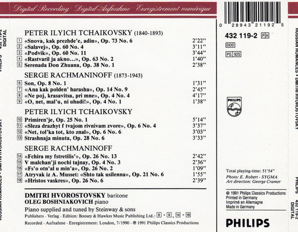 Dmitri Hvorostovsky, Олег Бошнякович, Sergei Vasilyevich Rachmaninoff, Pyotr Ilyich Tchaikovsky - Russian Romances (CD, Album)
