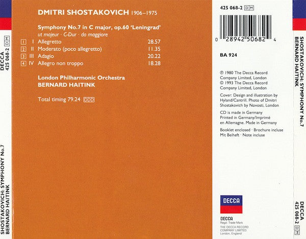 Dmitri Shostakovich, London Philharmonic Orchestra, Bernard Haitink - Symphony No.7 (CD, RE)
