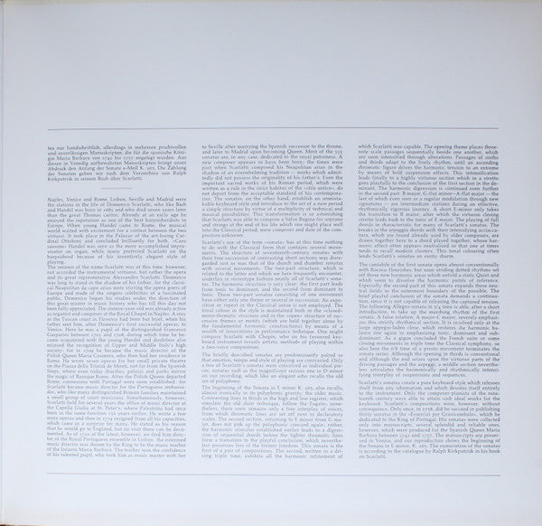 The gatefold sleeve contains extensive information, in German and English, concerning Domenico Scarlatti and his performed works.