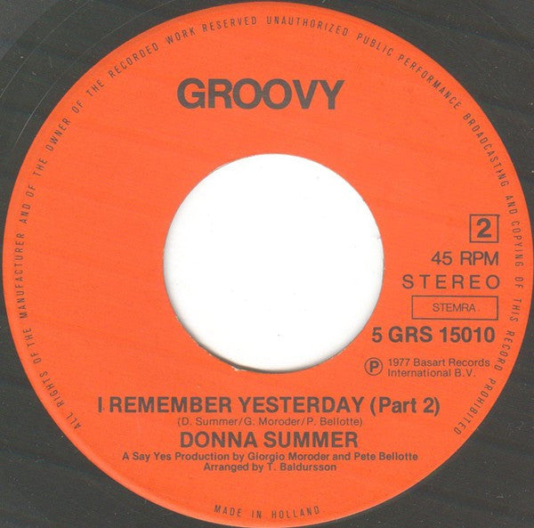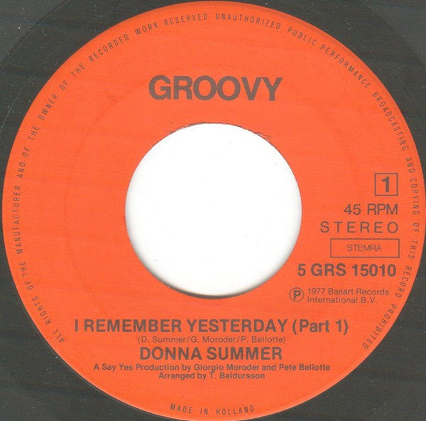 Donna Summer - I Remember Yesterday (Part 1/Part 2) (7", Single)