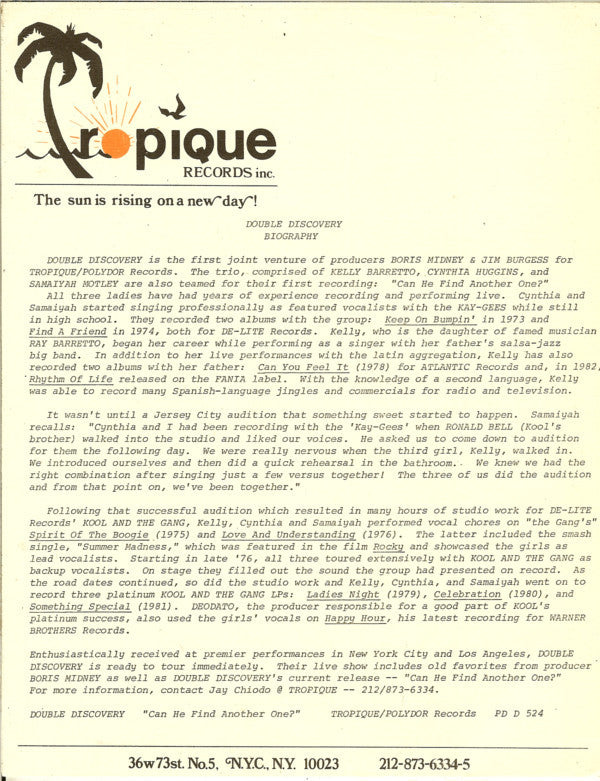 "Thanks to all the DJ's and dancers from East to West for helping make TROPIQUE a success and supporting Boris Midney through the years"