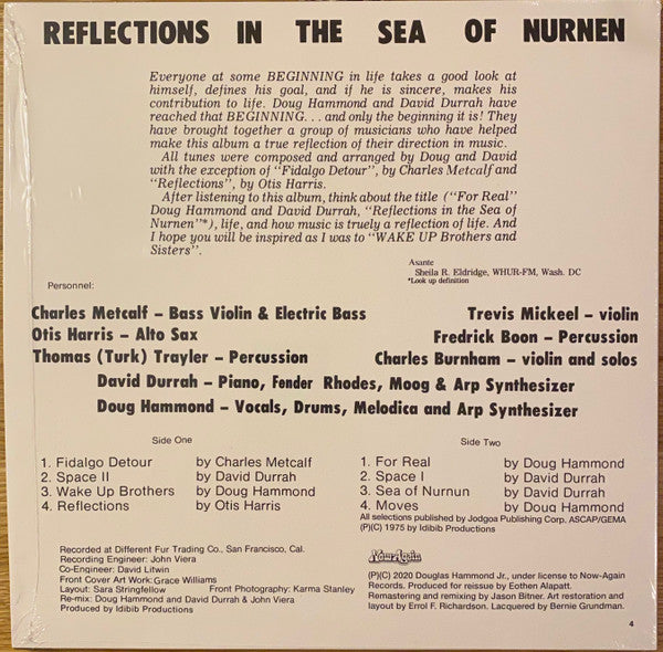 A1. Fidalgo Detour A2. Space II A3. Wake Up Brothers A4. Reflections B1. For Real B2. Space I B3. Sea Of Nurnen B4. Moves