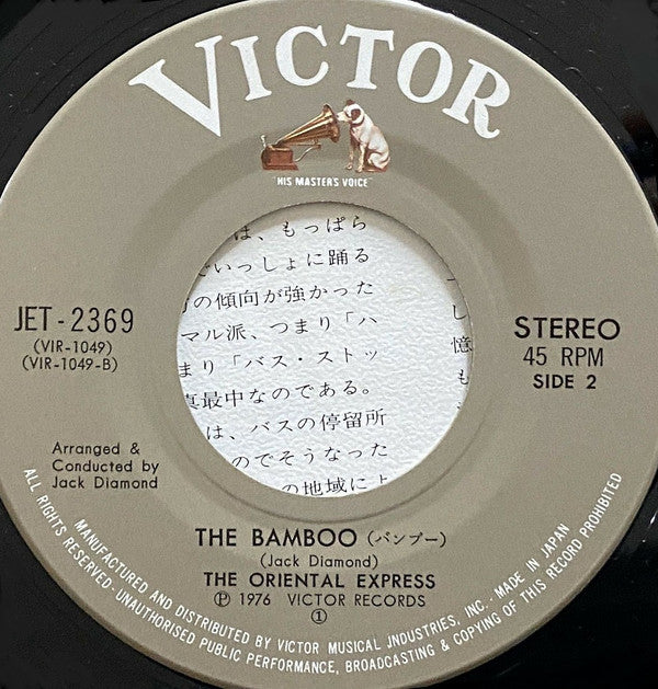 Artist listed in English as The Oriental Express on the back of the insert along with the Japanese name, and only in English on the record's labels.