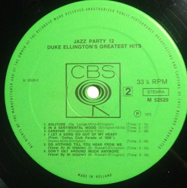 A1: New York, March 5, 1937 A2: January 13, 1938 A3: November 1, 1949 A4: October 1, 1928 A5: February 14, 1940 A6: May 16, 1933 B1: September 12, 1934 B2: April 30, 1935 B3: May 14, 1937 B4: March 3, 1938 B5: November 18, 1947 B6: November 20, 1947 This release is No. 12 in a CBS Series "Jazz Party"