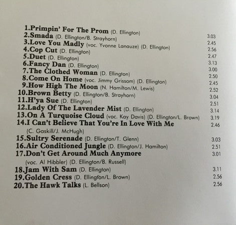 Release includes folded inlay with sleeve notes briefly describing Duke Ellington's life.