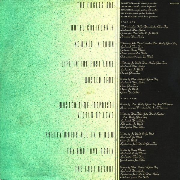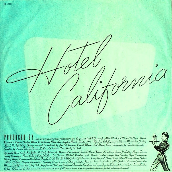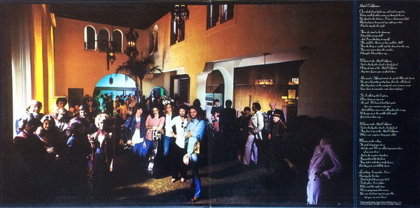 Issued in a gatefold sleeve with hotel lobby photo and Hotel California lyrics inside.